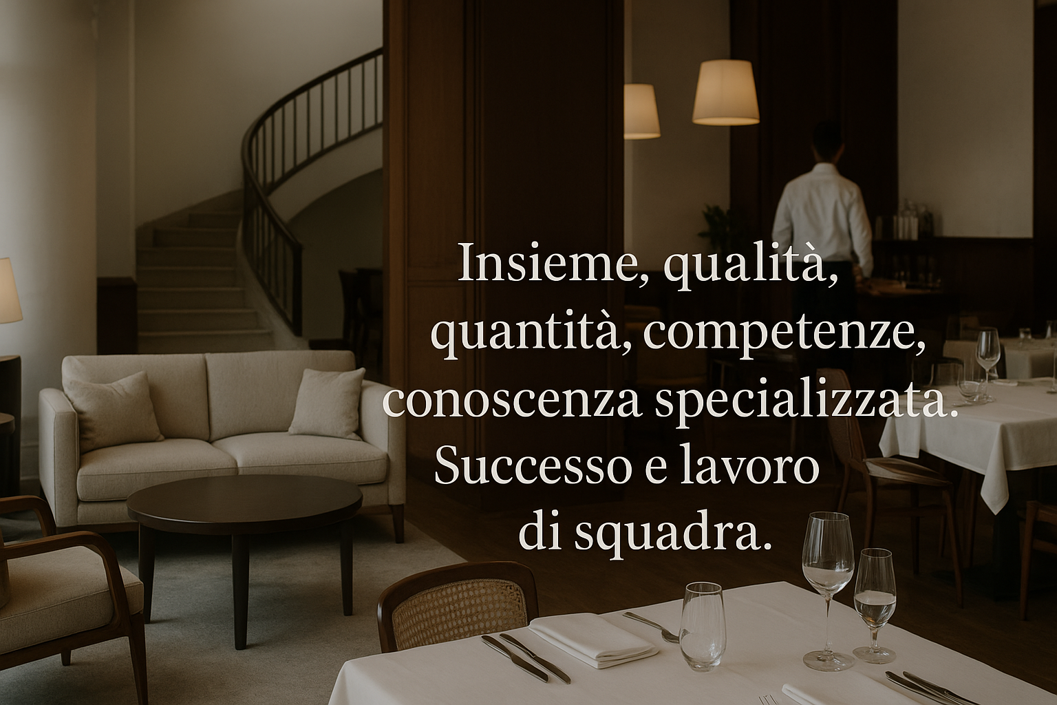 "Oltre venticinque anni trascorsi tra hotel di lusso e ristoranti stellati hanno formato la mia visione dell'ospitalità: equilibrio tra precisione, calore umano e attenzione al dettaglio.